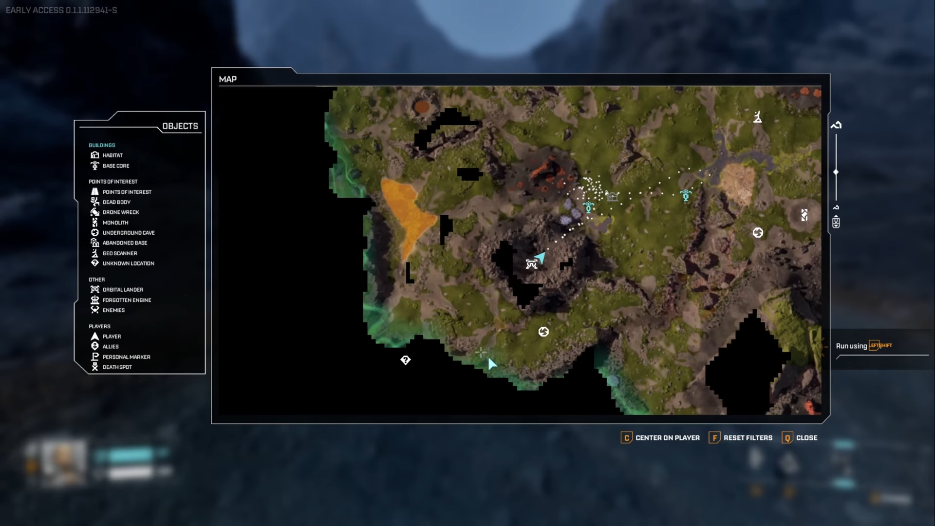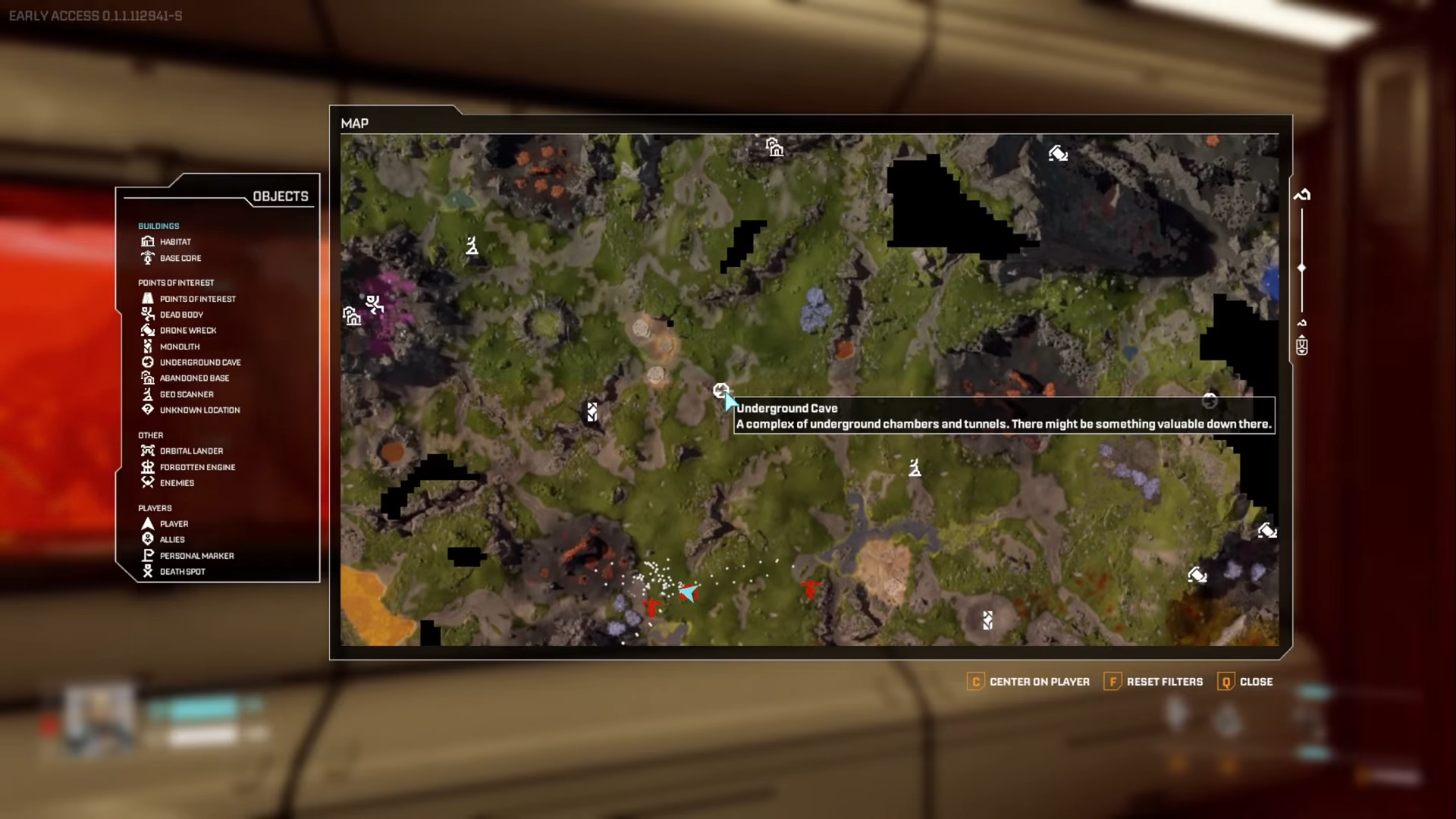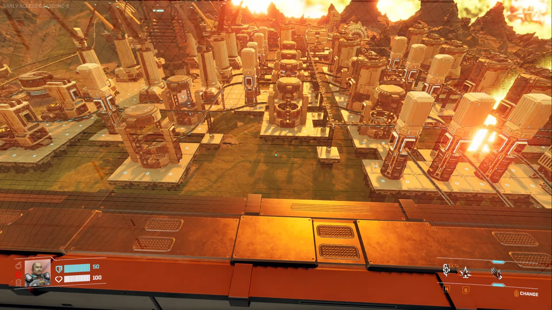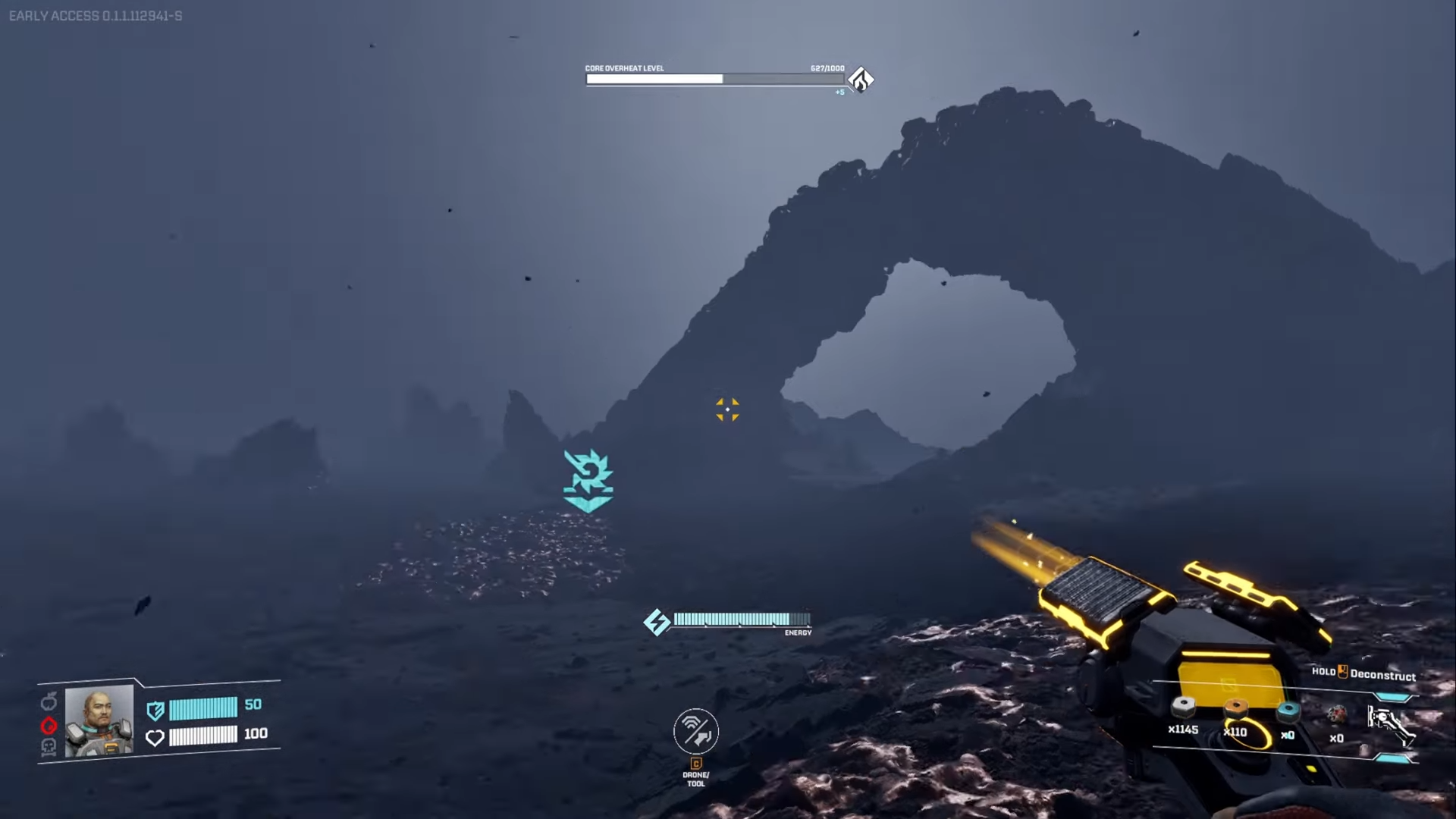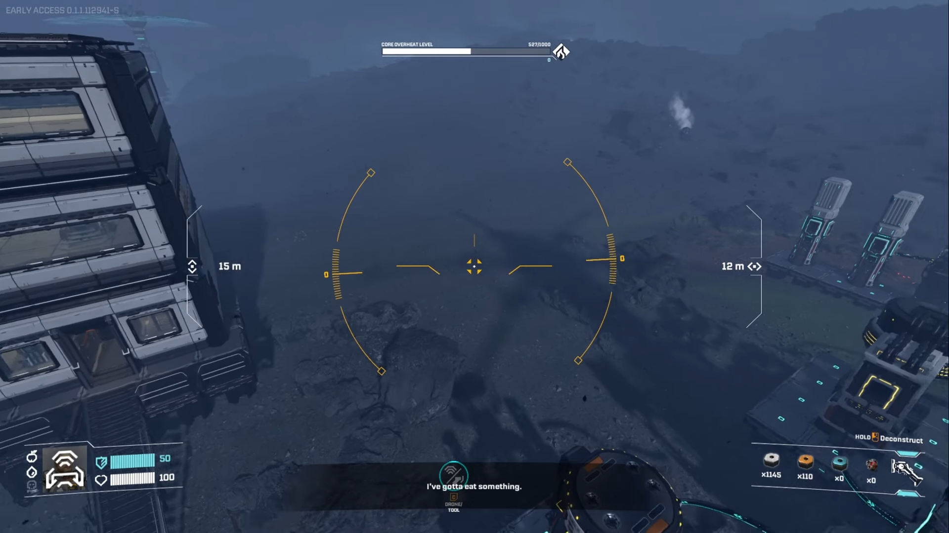 Hold F breaks builds, reveals hidden mining nodes (Helium-3 shines).