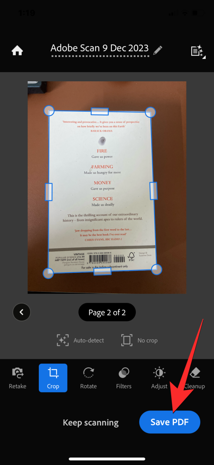 - Once you’ve scanned the required set of pages, tap on Save PDF.