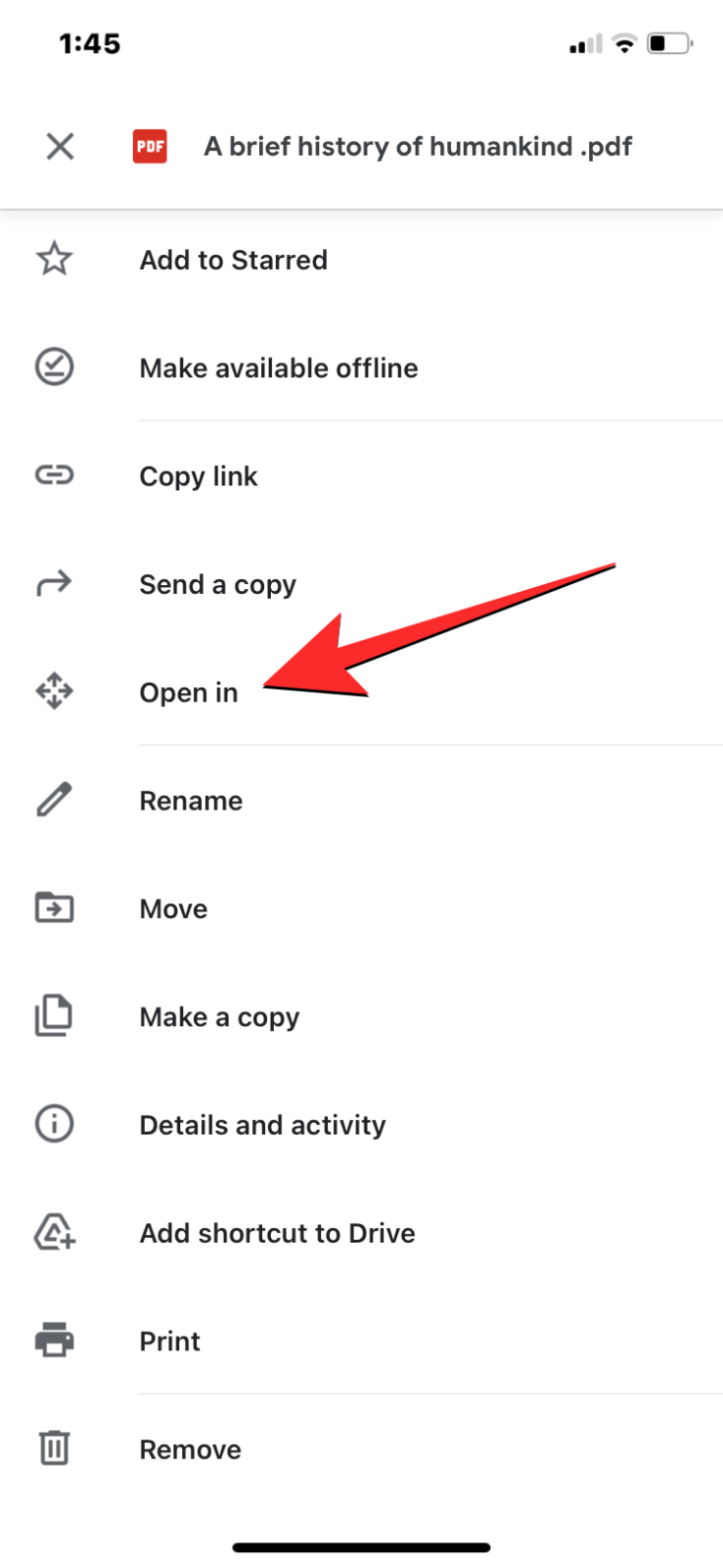 - To save this file on your iPhone, open it and go to the 3-dots icon > Open in > Save to Files.