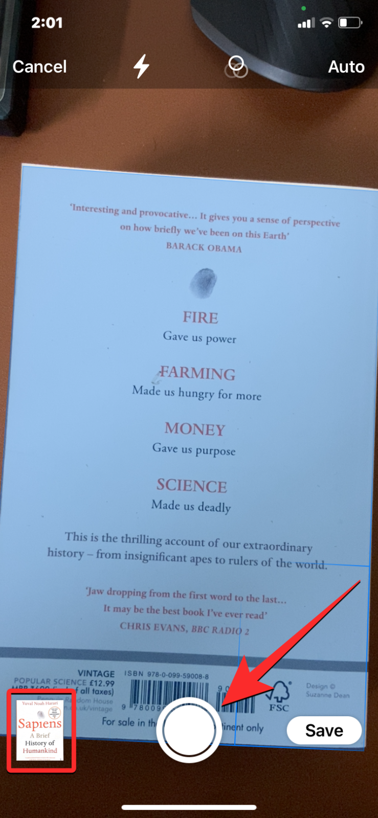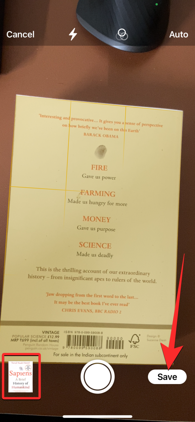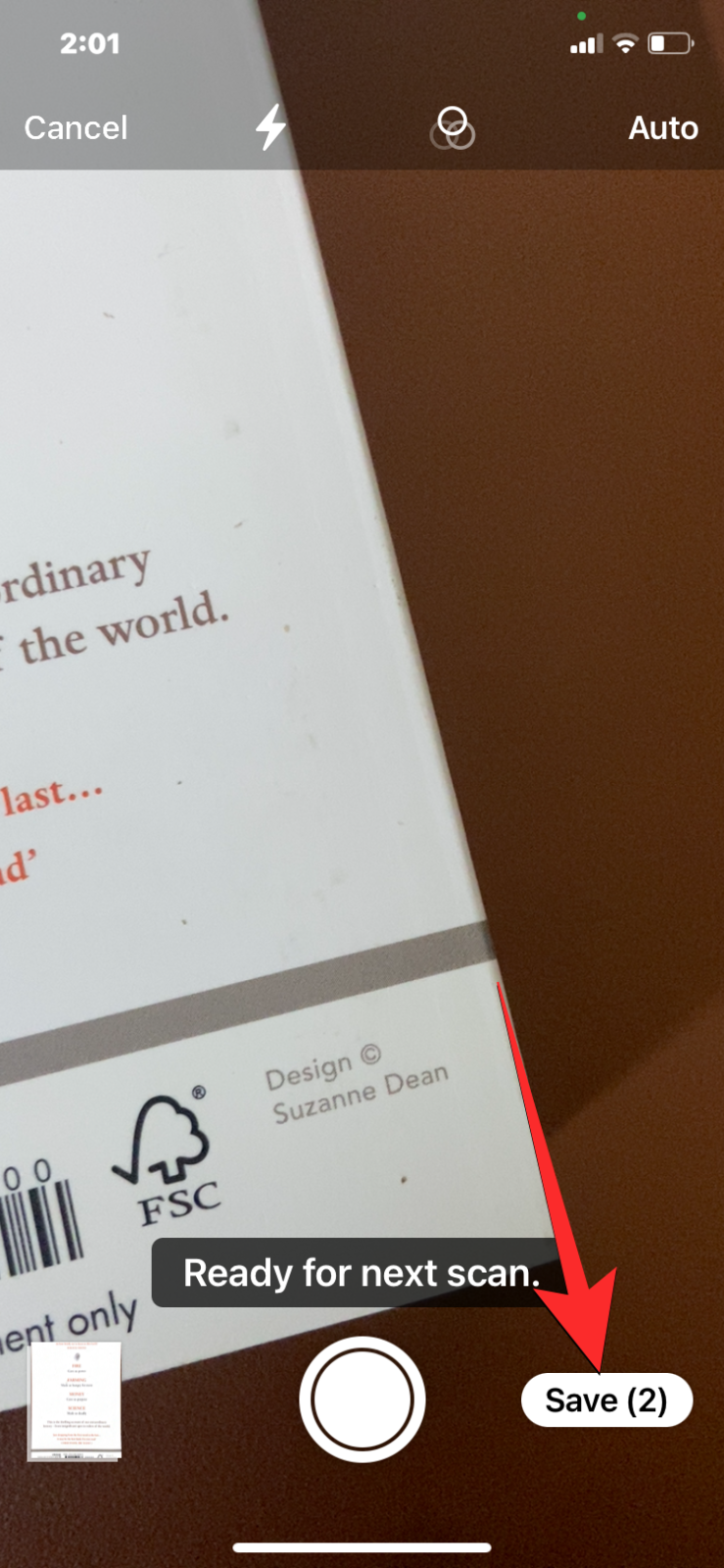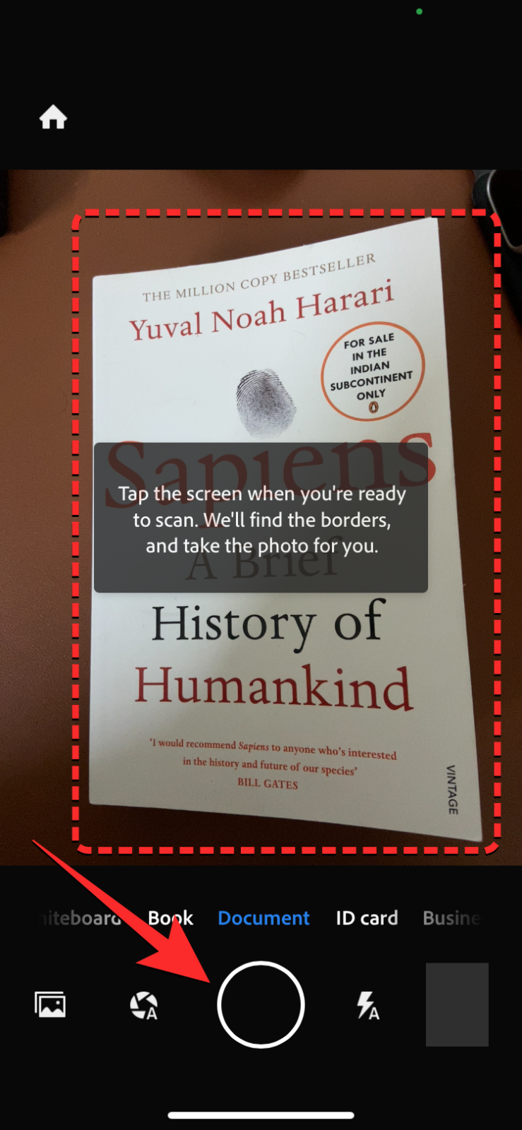 - To start scanning, tap anywhere on the screen so that the app automatically detects and scans the page. If that doesn’t happen, tap on the shutter button at the bottom.