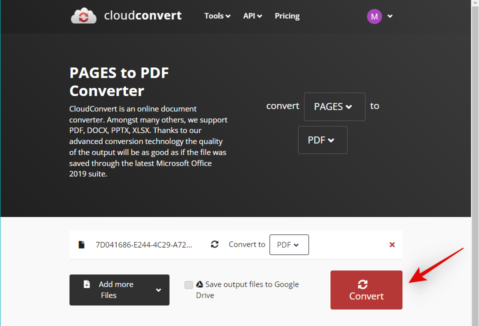 You can also convert your Pages file to .PDF format using an online converter. Follow the steps below to help you along with the process.