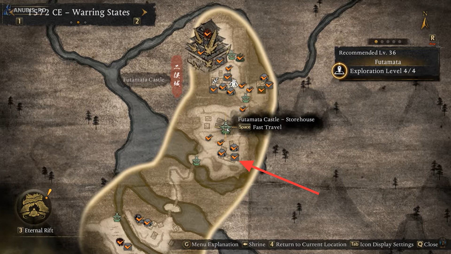 • Defeat mini-boss Anayama Nobutada in the temple area.