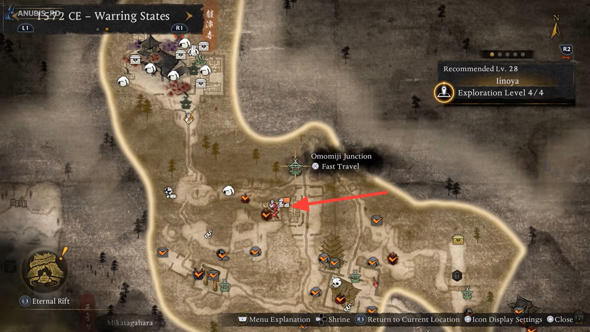 • Reach the Omomijo Junction Shrine.