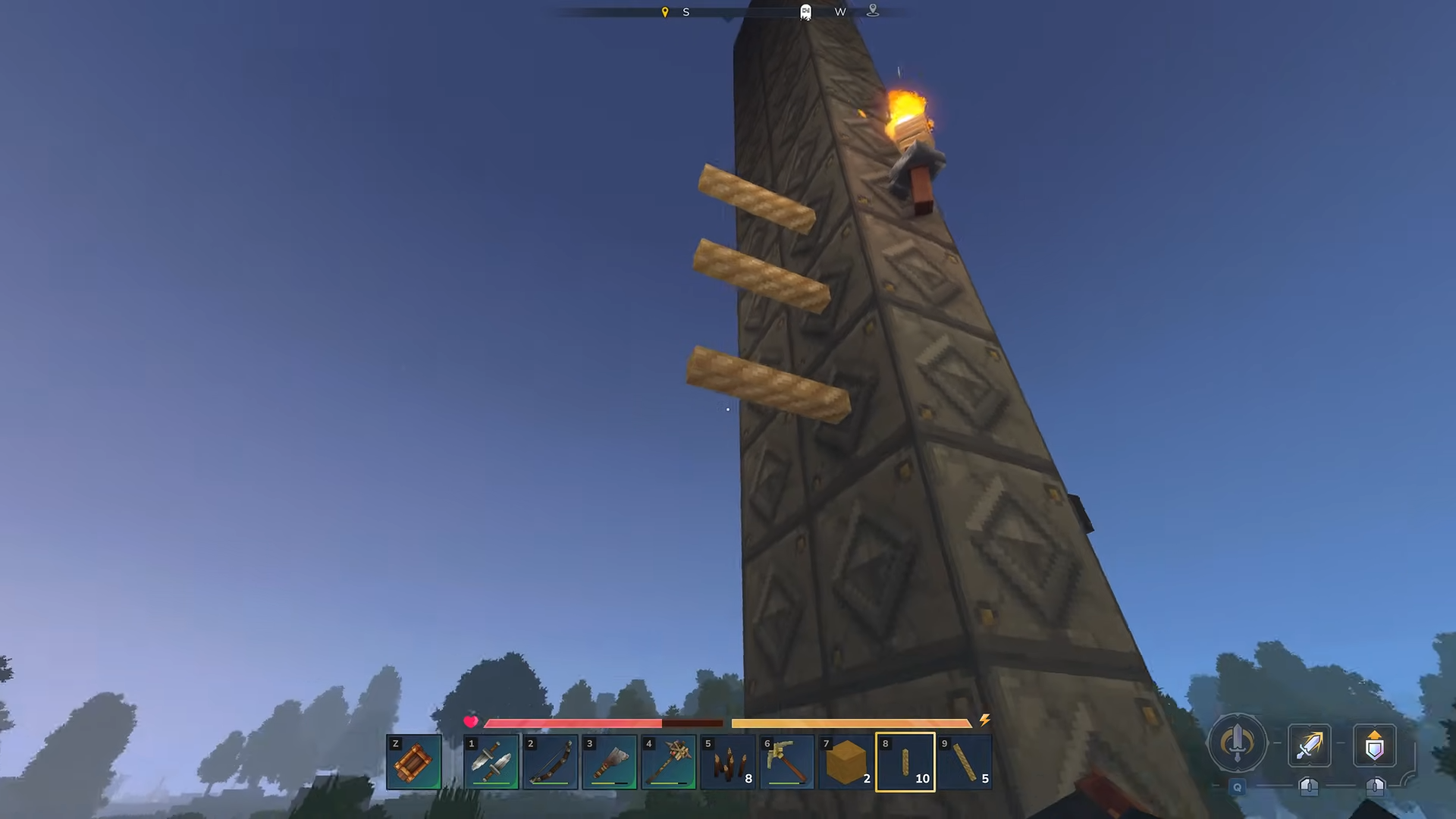 Plant fibers can be crafted into ropes at a builder's workbench. These can be placed vertically and used like infinite ladders to climb steep walls.
