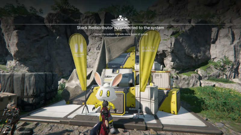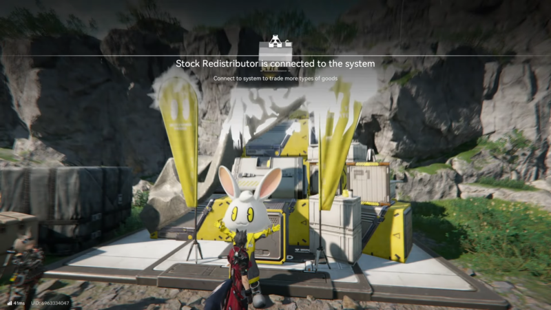 Look for the Stock Redistributor marker/icon and locate the terminal/NPC point (many players use the “rabbit” landmark as a visual cue, depending on the spot).