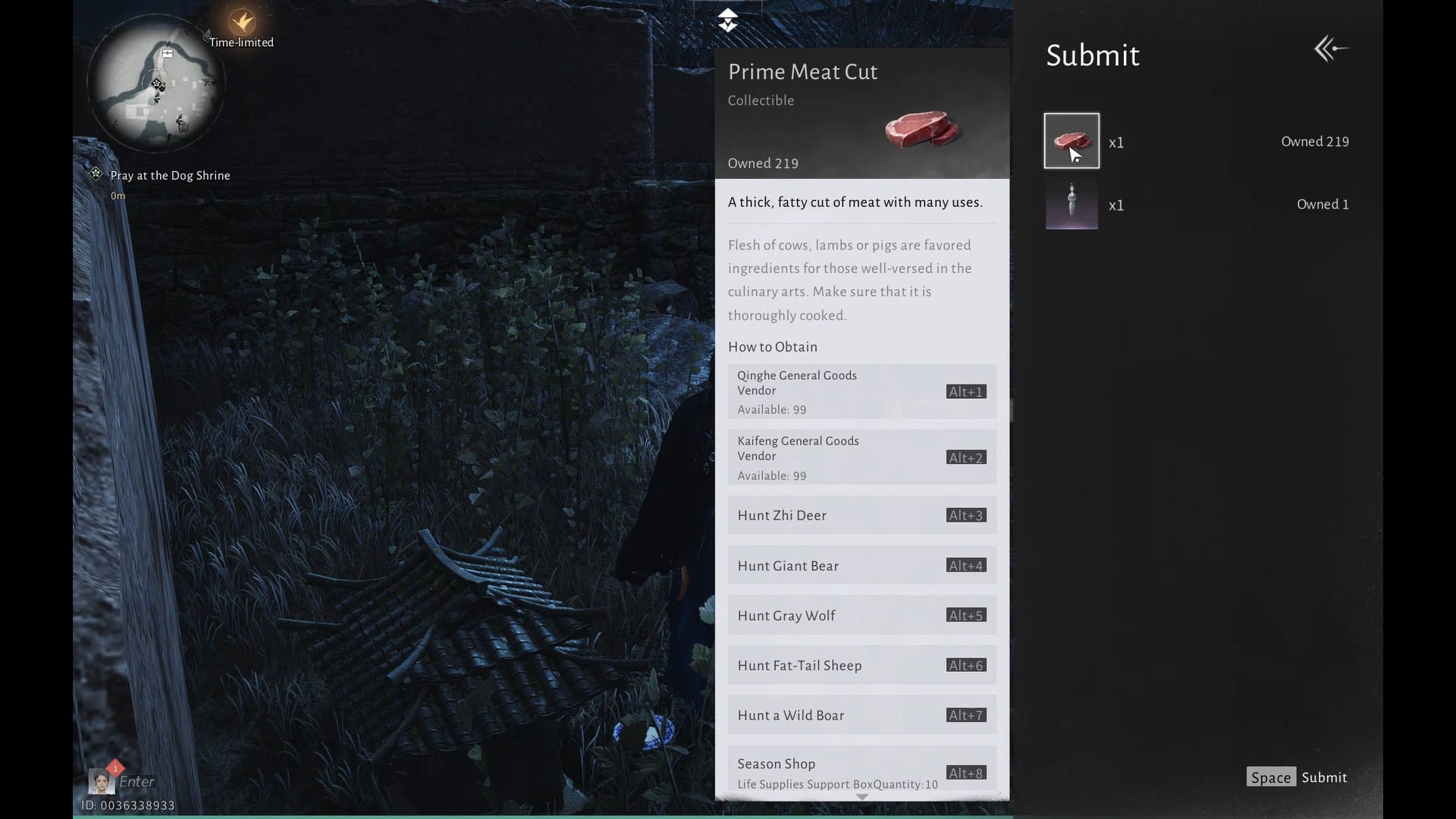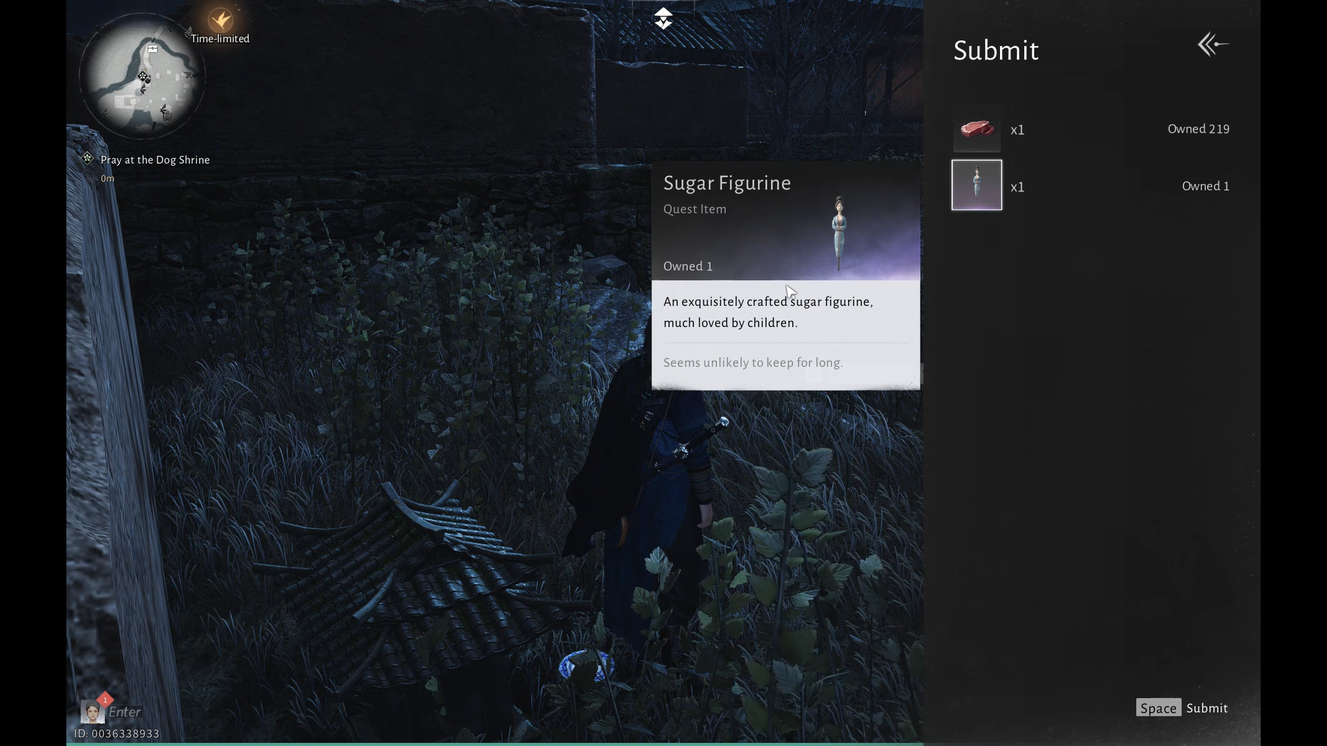 Make your way to the next quest marker, the Dog Shrine. You need Prime Meat Cut and Sugar Figurine as offerings to pray at this shrine.