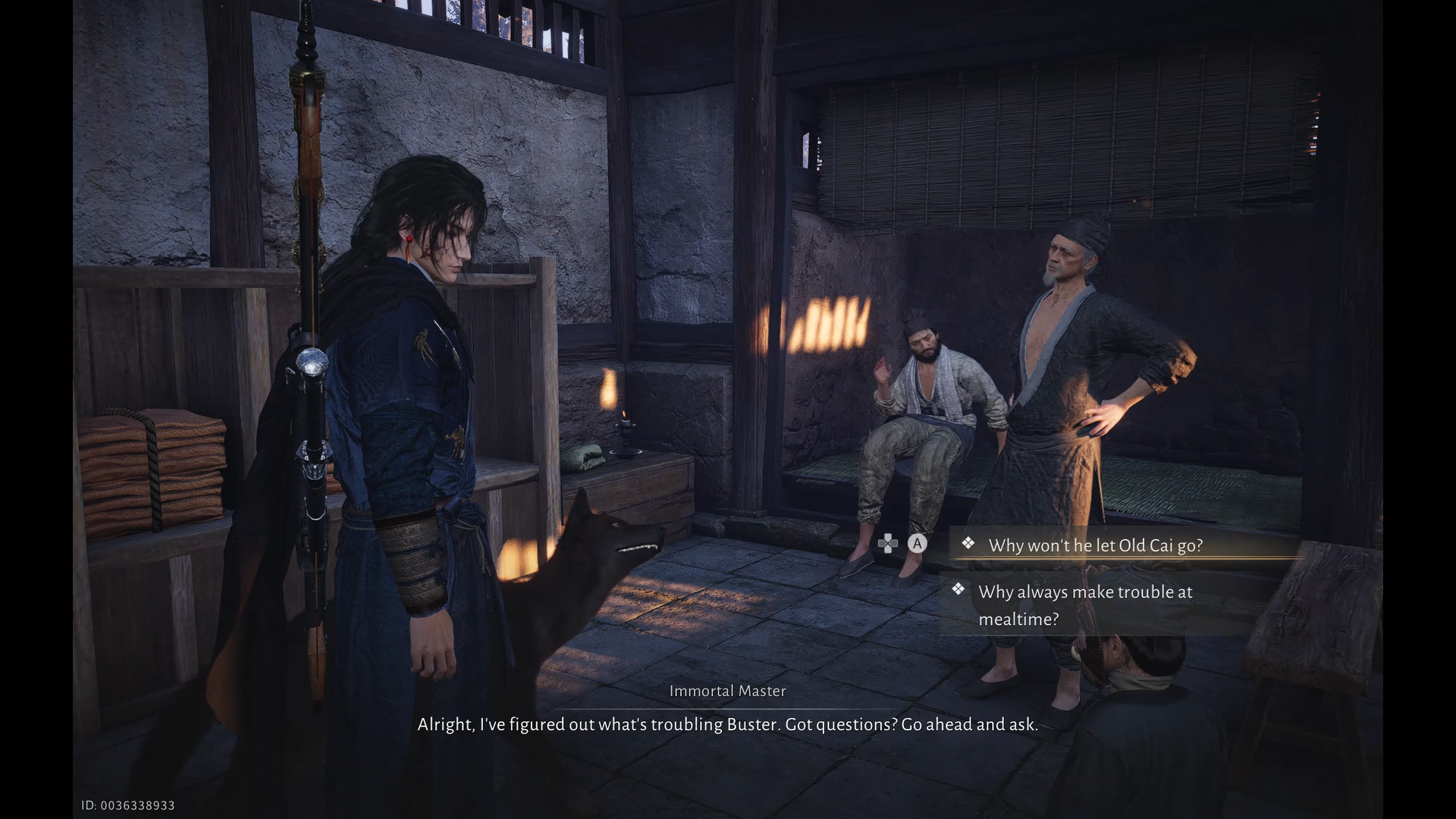 Complete the dialogue with Cai, Yang, Immortal Master, and understand why Buster is behaving the way he is, with Cai.