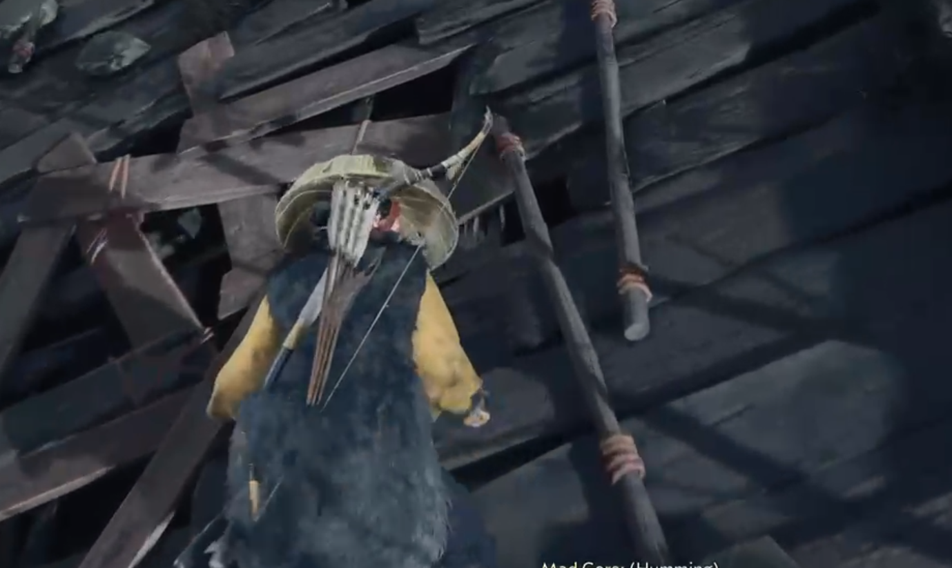 Since Goro is unable to break bamboos from the inside you get on the roof to help him.