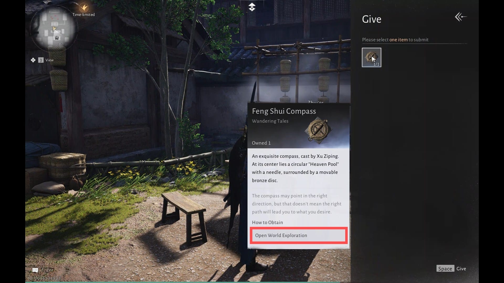 After speaking with Zhui'er, give her the Feng Shui Compass.
