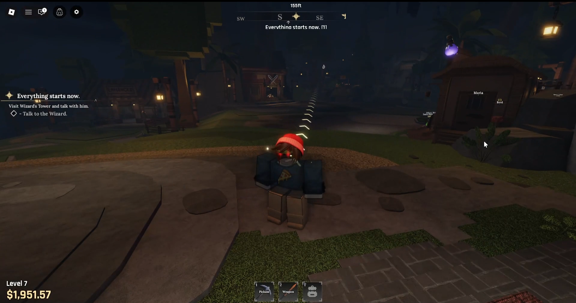 Head to the Wizard inside his Wizard Tower. If the entrance gate is bugged, go behind the tower instead—you’ll find the Wizard standing in front of the window.