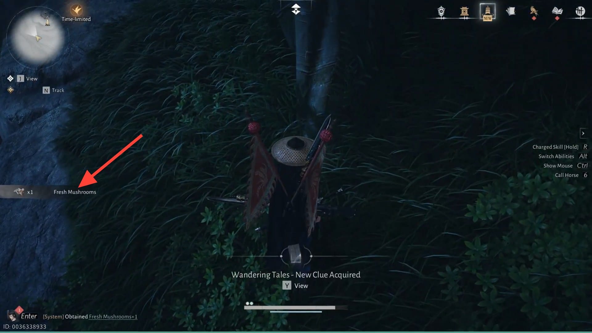 Explore the nearby outskirts surrounding the tower to collect Fresh Mushrooms from the forest floor.