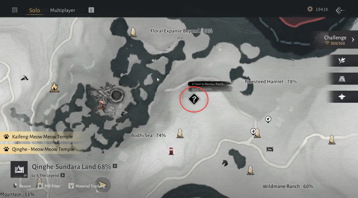 The quest takes place in the Qinghe region, near Bodhi Sea and Finsteed Hamlet.