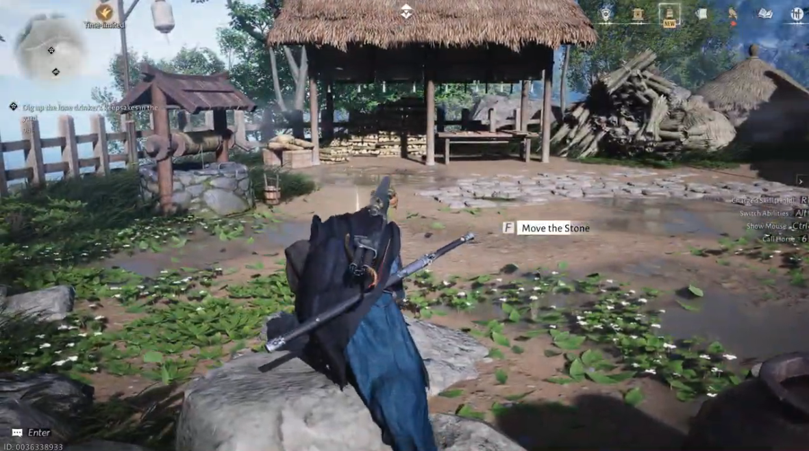 Head to the courtyard behind the house. Move the stones on the ground to uncover the hidden items Qiu mentioned.