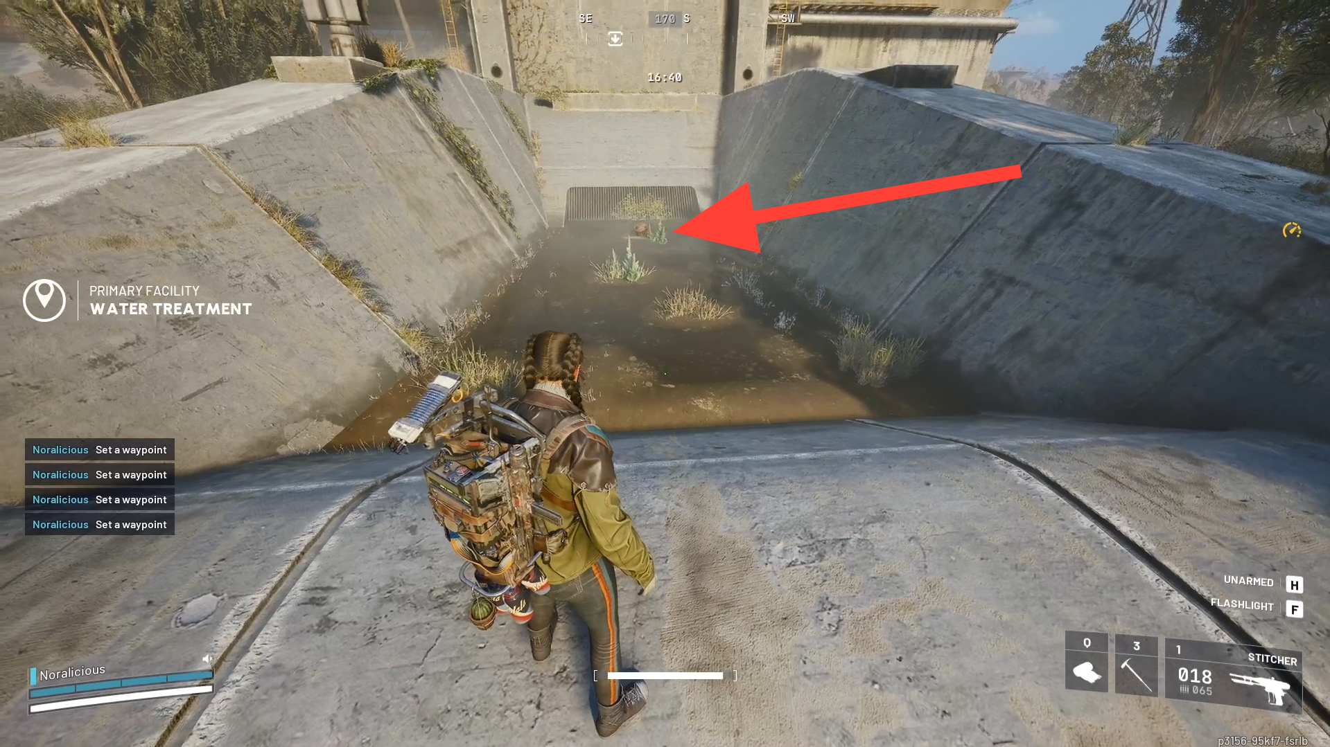 After reaching the water intake area under the Water Treatment Control building, head towards the barrel sitting in the middle of the swampy water.