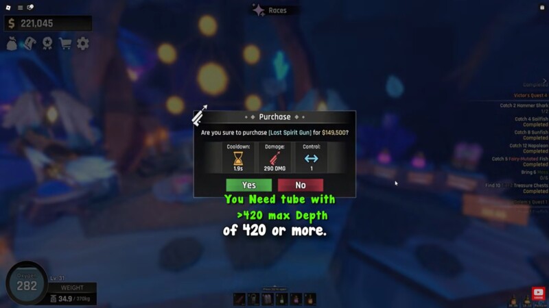 Before you even accept the Barrier Quest, you should strongly consider securing the Spirit Tube and equipping a high-damage gun. The Spirit Tube allows deeper fishing access, which is critical for catching high-tier fish efficiently. Using something like the Zipline Tube may seem convenient, but its limited depth makes it inefficient for farming the required species.