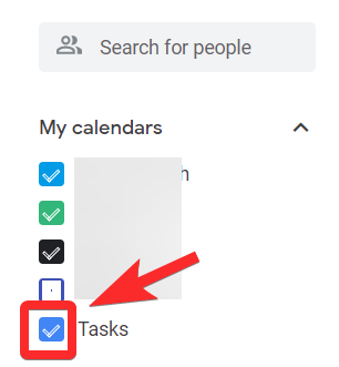 In the left panel, scroll down till you reach the My calendars section. Here, you will be able to see Tasks with a checked checkbox before it. Just like in the case of the phone, uncheck it.