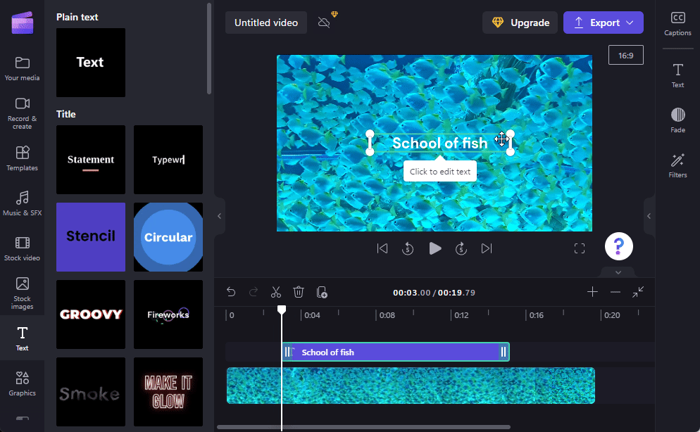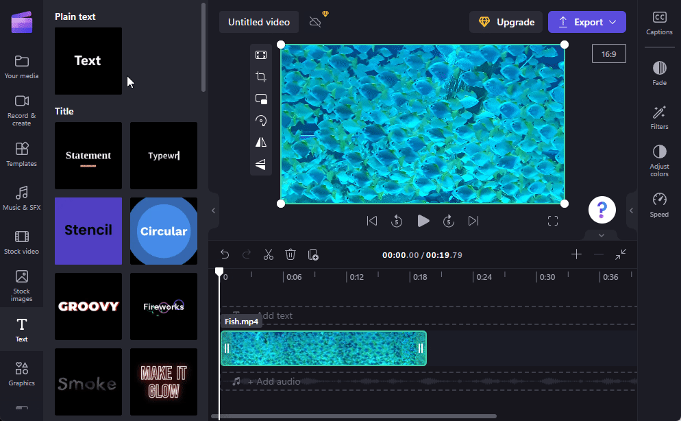 Clipchamp also offers a few stock text animations that you can use to captivate your audience. Here’s how to add and edit them in your video: