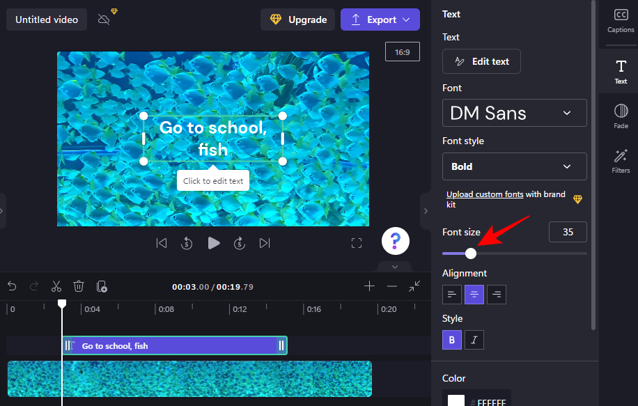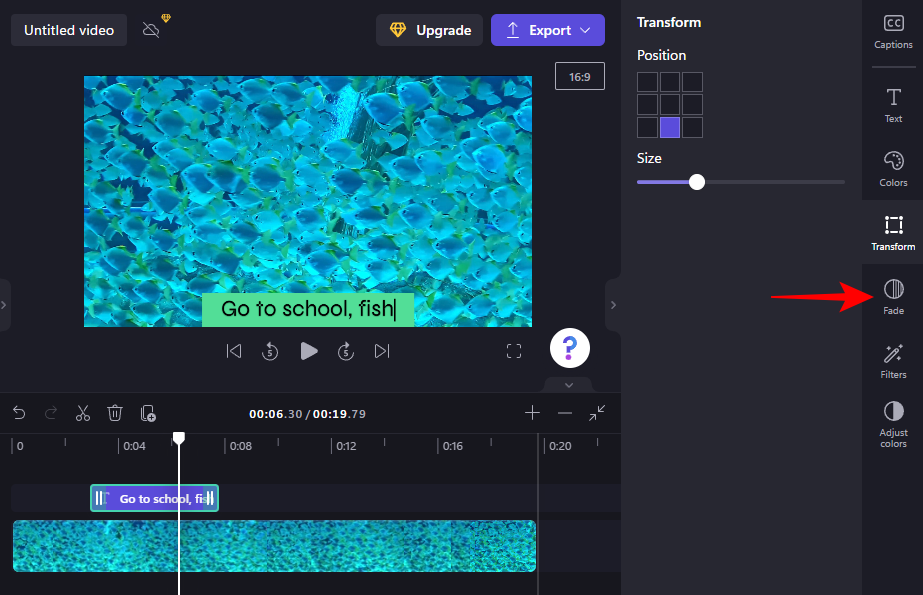 To add the fade-in and fade-out effect to your text, click on Fade on the right.