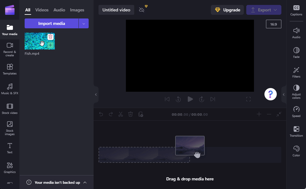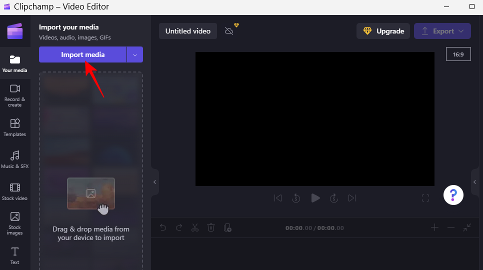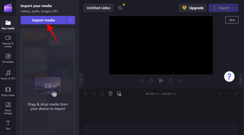 Now, let’s import the video to the timeline. First, click on Import media.