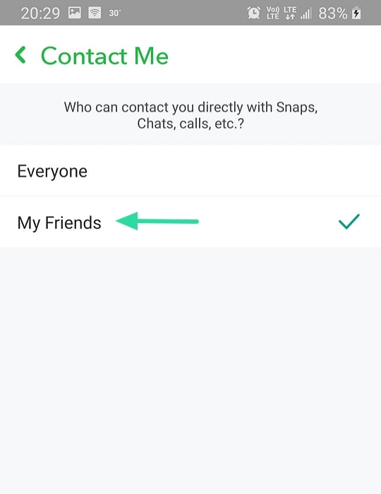 If you do not want people outside of your Friends list to be able to contact you, you can change who is allowed to send you snaps and messages. To do so, go to Profile > Settings > Who can… > Contact Me. Here, select ‘My Friends’ to only allow people in your Friends list to be able to contact you.