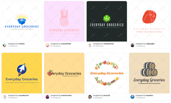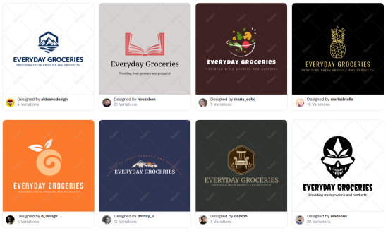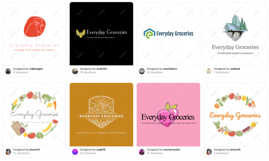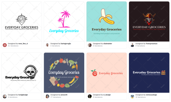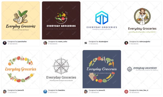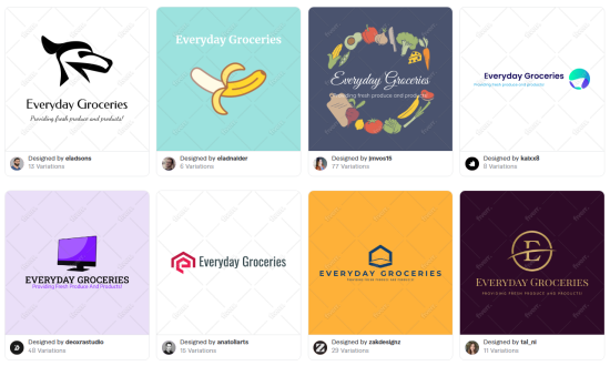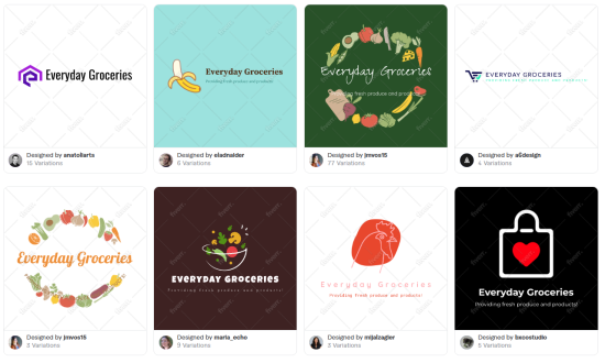 We changed the personality settings to match the voice of our fictional grocery store brand in Fiverr’s logo maker which resulted in the following logos.
