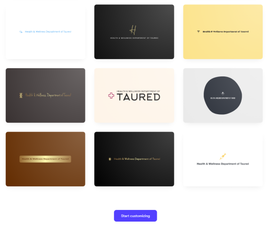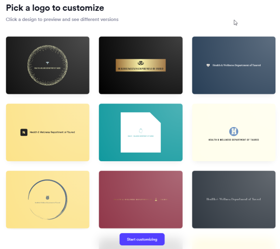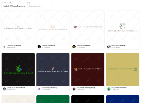 Looka resulted in the following logos when generating logos for our fictional health department for the country of Taured.