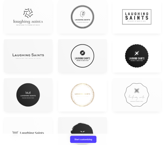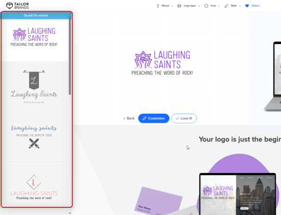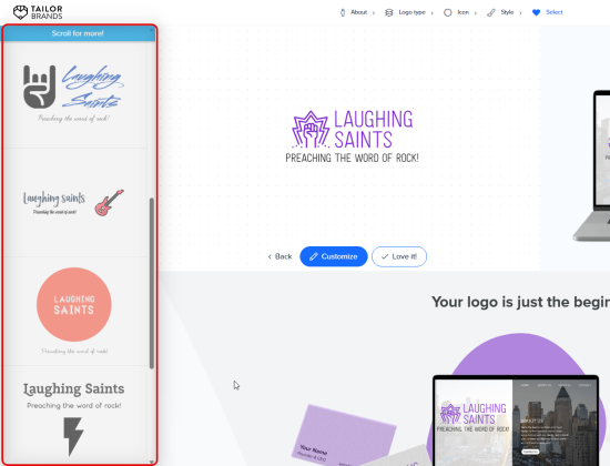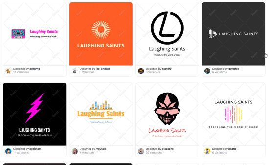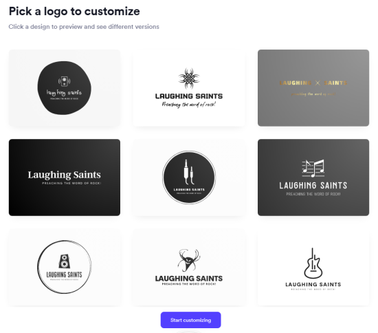 Tailor Brands’ logo maker came up with these results for our fictional rock band.