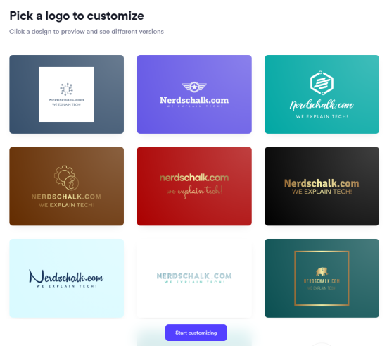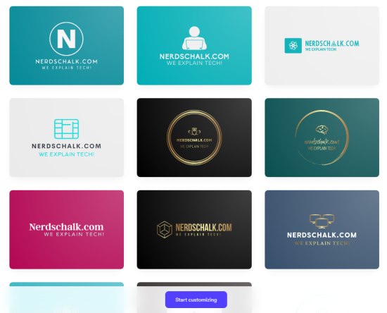 Our last choice is Designs.AI’s logo maker, a relatively easy-to-use AI logo maker that helps you create tons of logos for your brand with a few simple clicks. While offering a similar process to other AI logo makers in this list, it allows you to choose different logo examples you like. Once chosen, the AI will generate logos based on the data you provide, including the brand name, logo style, logos you liked, and more. Designs.AI is fairly easy to use and can help you generate 100s of logos with a few simple clicks.