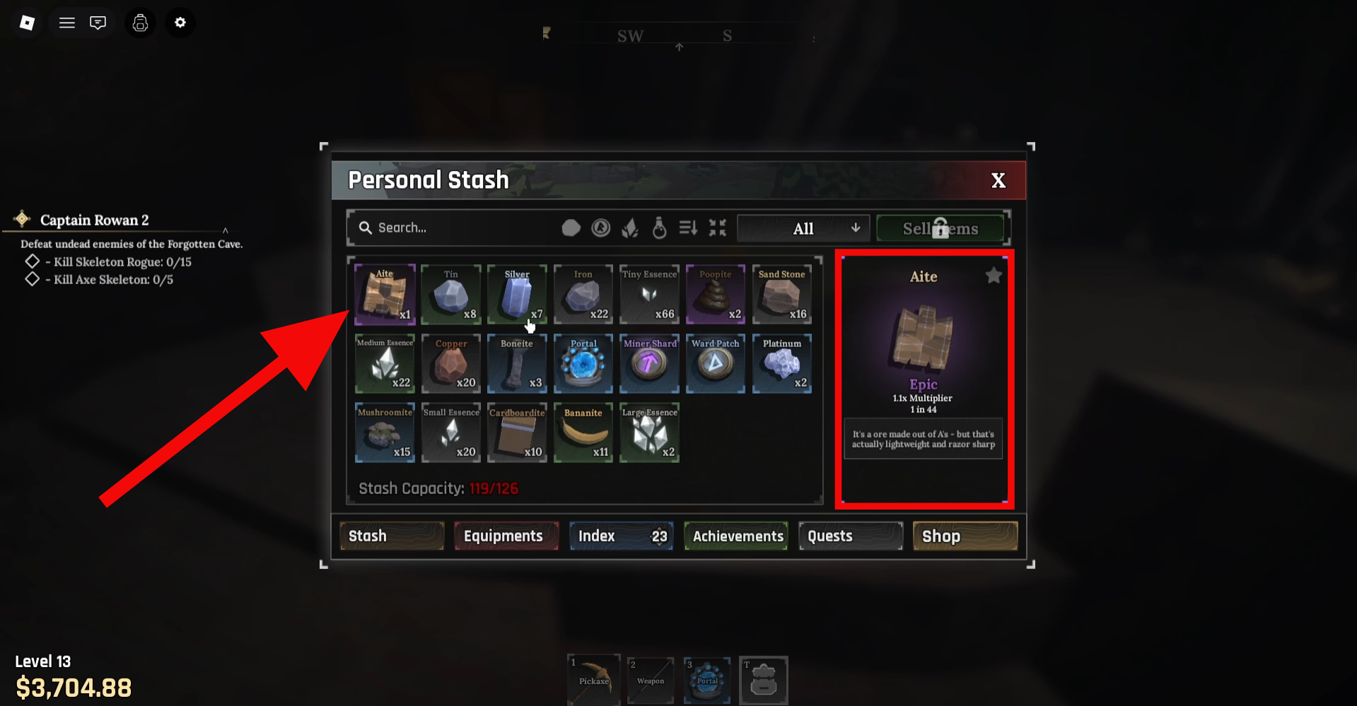 Aite is a rare, Epic-rarity crafting ore in The Forge, found only in the Stonewake’s Cross cave. Obtained exclusively from Boulders with an approximate 1 in 44 drop chance, it’s prized for forging weapons and armor with a distinct brown finish while serving as a valuable mid-game material for enhancing your equipment options.