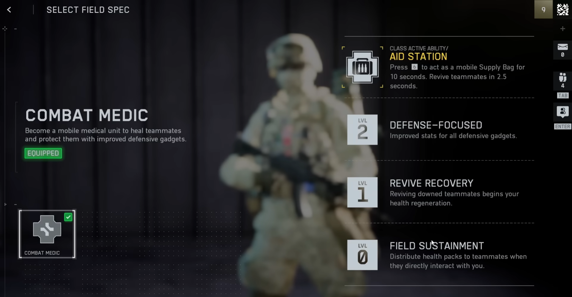 - Combat Medic: Heals allies faster and revives more quickly while moving.