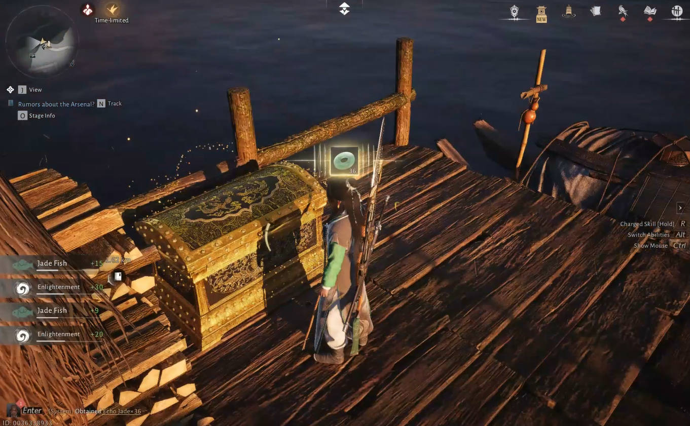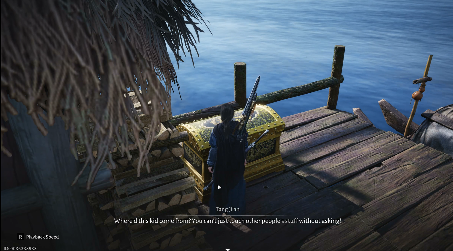 Once the tale ends, return to the locked chest on the dock. You can now open it and claim Tang Ji’an’s treasure.