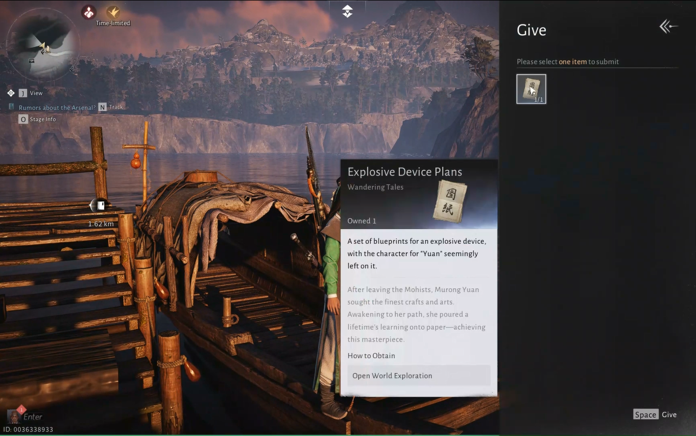 Talk to Tang Ji’an. He explains that he’s searching for the truth behind a past explosion and needs the explosives blueprint to finally understand what happened. He will only share his treasure with you once you bring him this document.