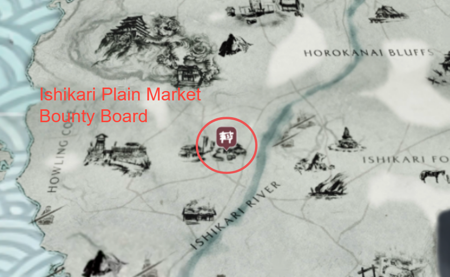 | Ishikari Plain | Ishikari Market (at the market / settlement) | Called “Ishikari Market Bounty Board” in some guides. |