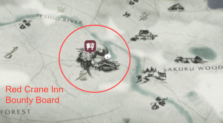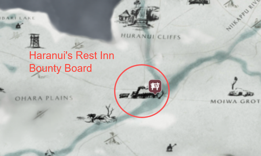 In Teshio Ridge, the bounty board is located at Red Crane Inn.