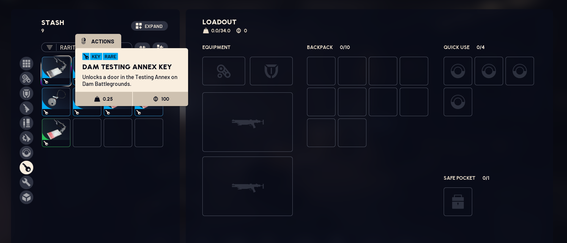 | 5 | Dam Testing Annex Key | Dam | Unlocks two Testing Annex doors |