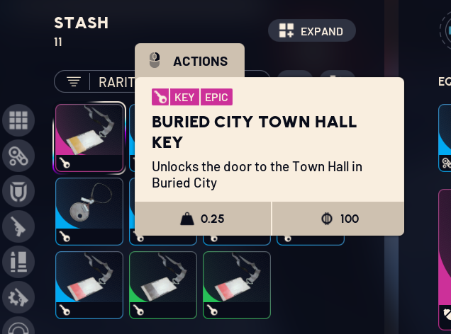 | 11 | Buried City Town Hall Key | Buried City | Opens Town Hall building door |