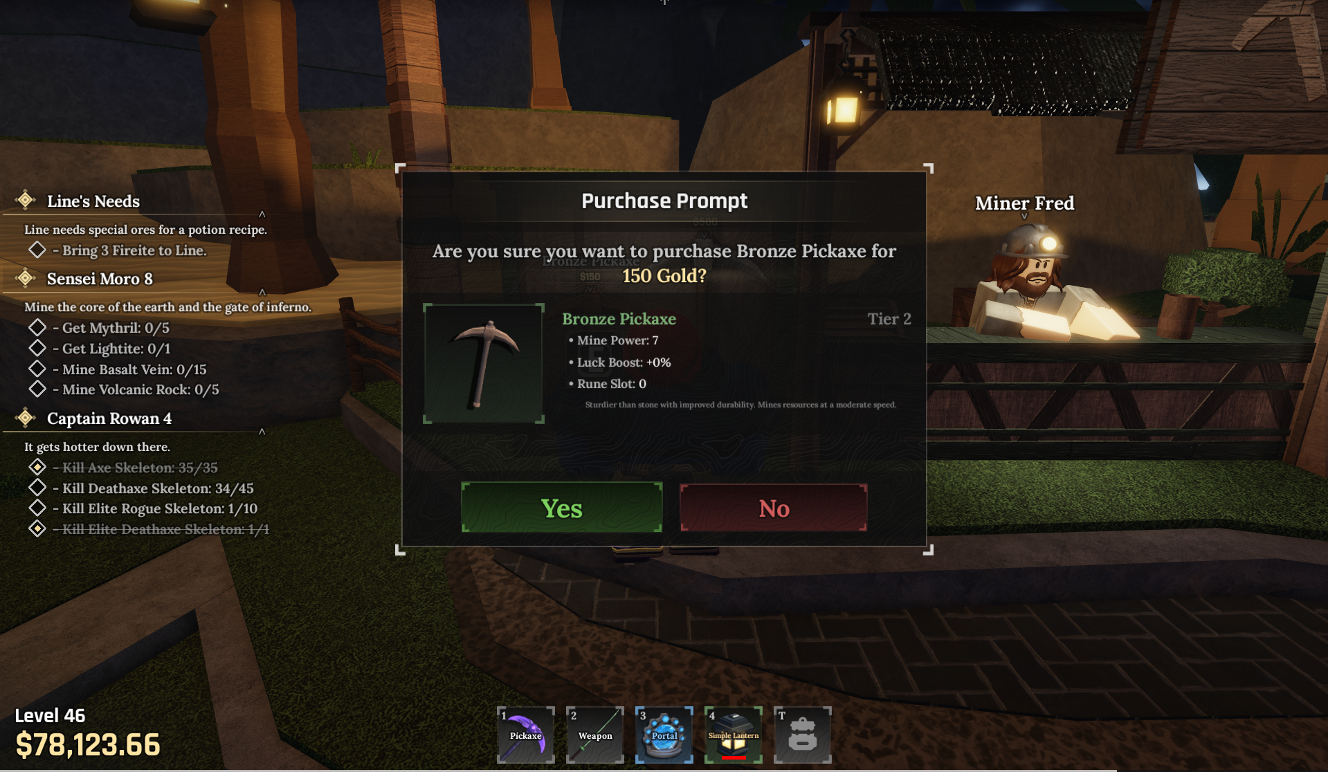 You can buy the Bronze Pickaxe from Miner Fred’s Shop in Stonewake’s Cross for $150.