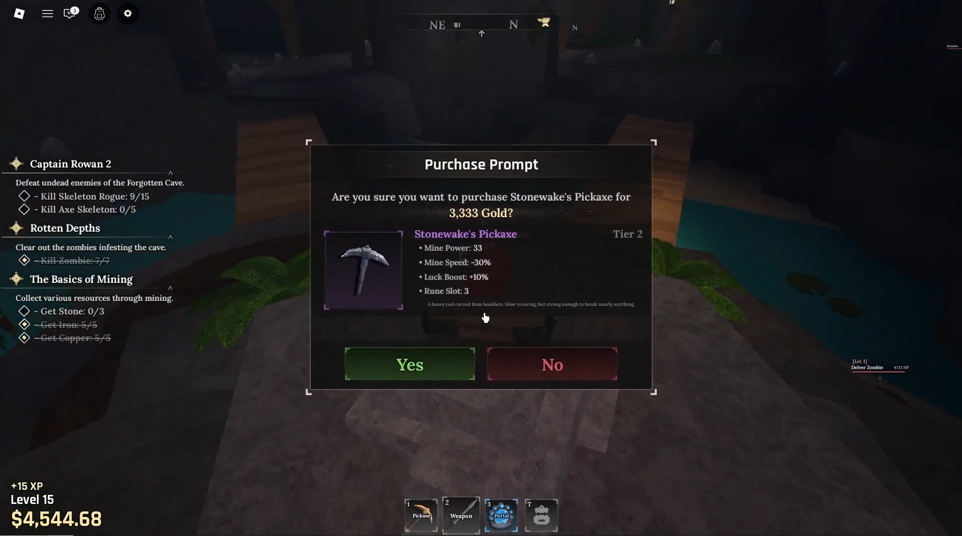 You can purchase the Stonewake's Pickaxe in the Inner Cave at Stonewake's Cross. It’s embedded in a boulder at the center of the cave and costs $3333 to obtain.