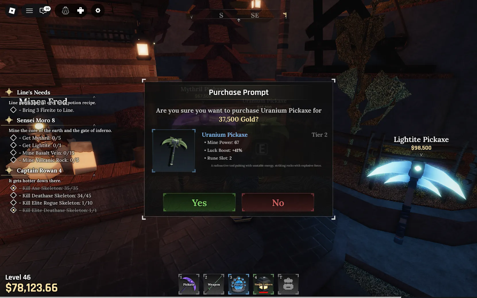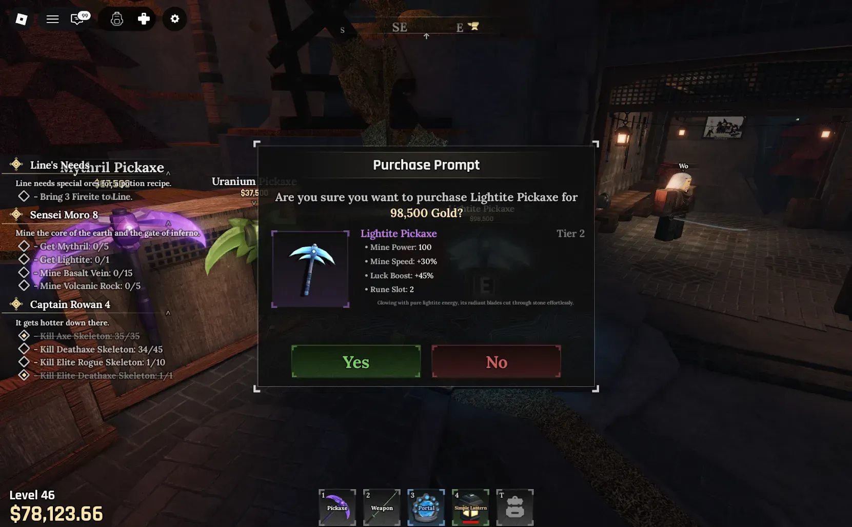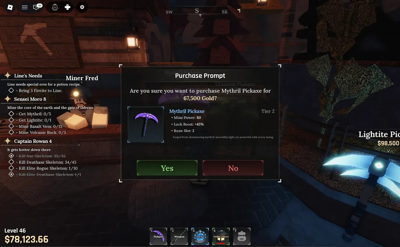 You can buy the Lightite Pickaxe from Miner Fred’s Shop in Forgotten Kingdom for $98,500.