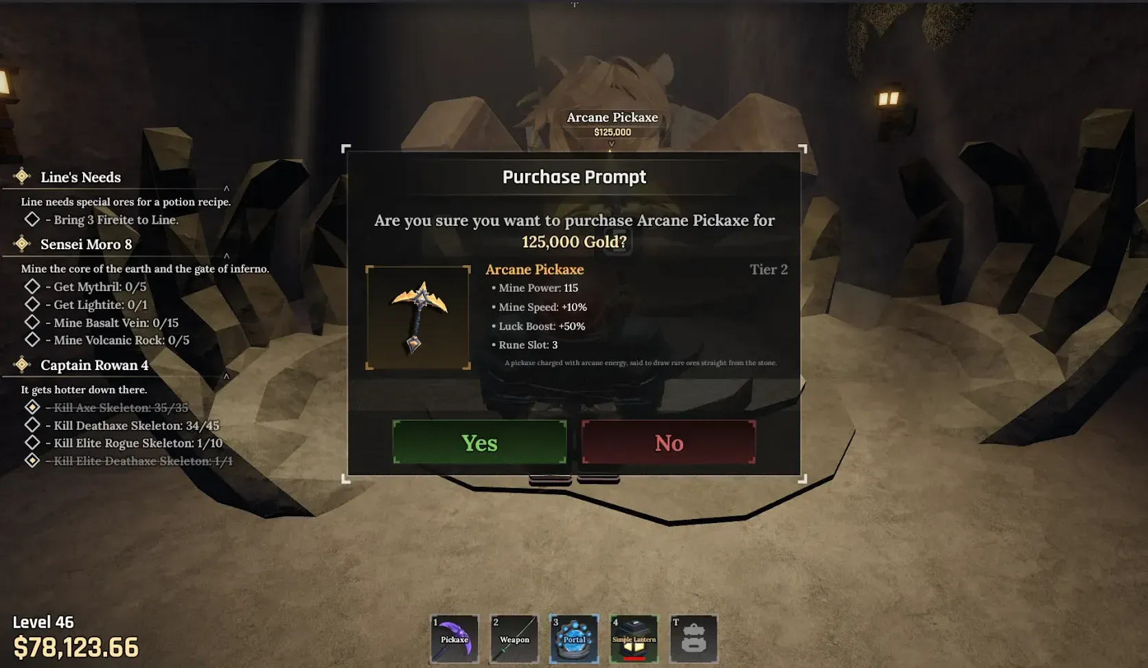 You can buy the Arcane Pickaxe from the Fallen Angel’s Cave in Stonewake's Cross for $125,000.