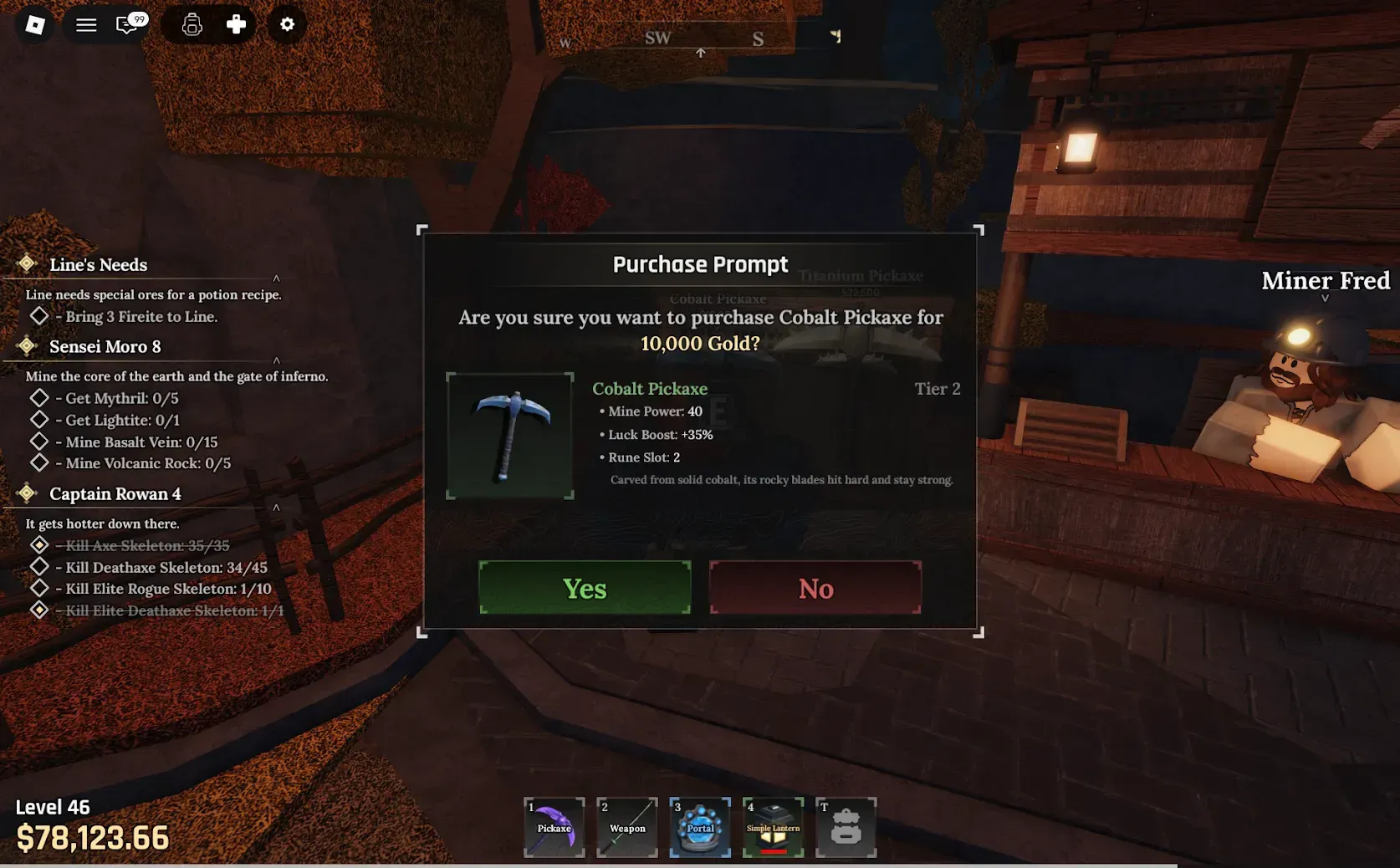 You can buy the Cobalt Pickaxe from Miner Fred’s Shop in Forgotten Kingdom for $10,000.