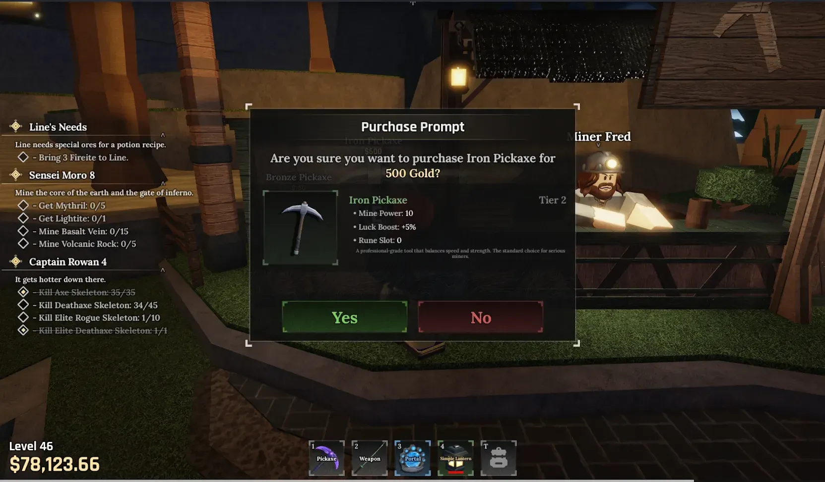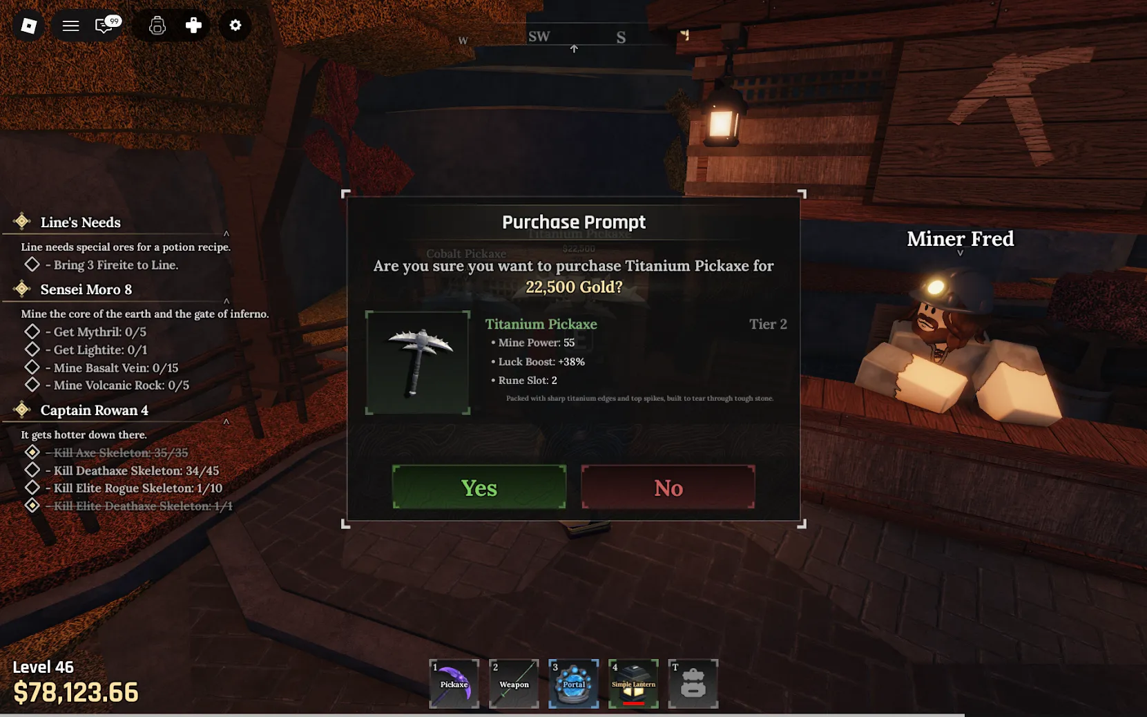 You can buy the Titanium Pickaxe from Miner Fred’s Shop in Forgotten Kingdom for $22,500.
