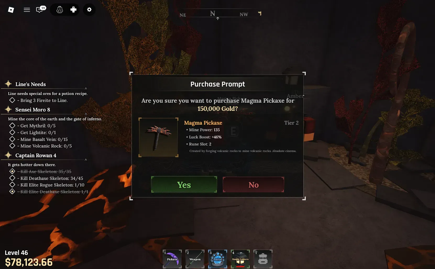 You can buy the Magma Pickaxe from next to Amber in the Ashen Passage, right near the entrance to the Volcanic Depths for $150,000.