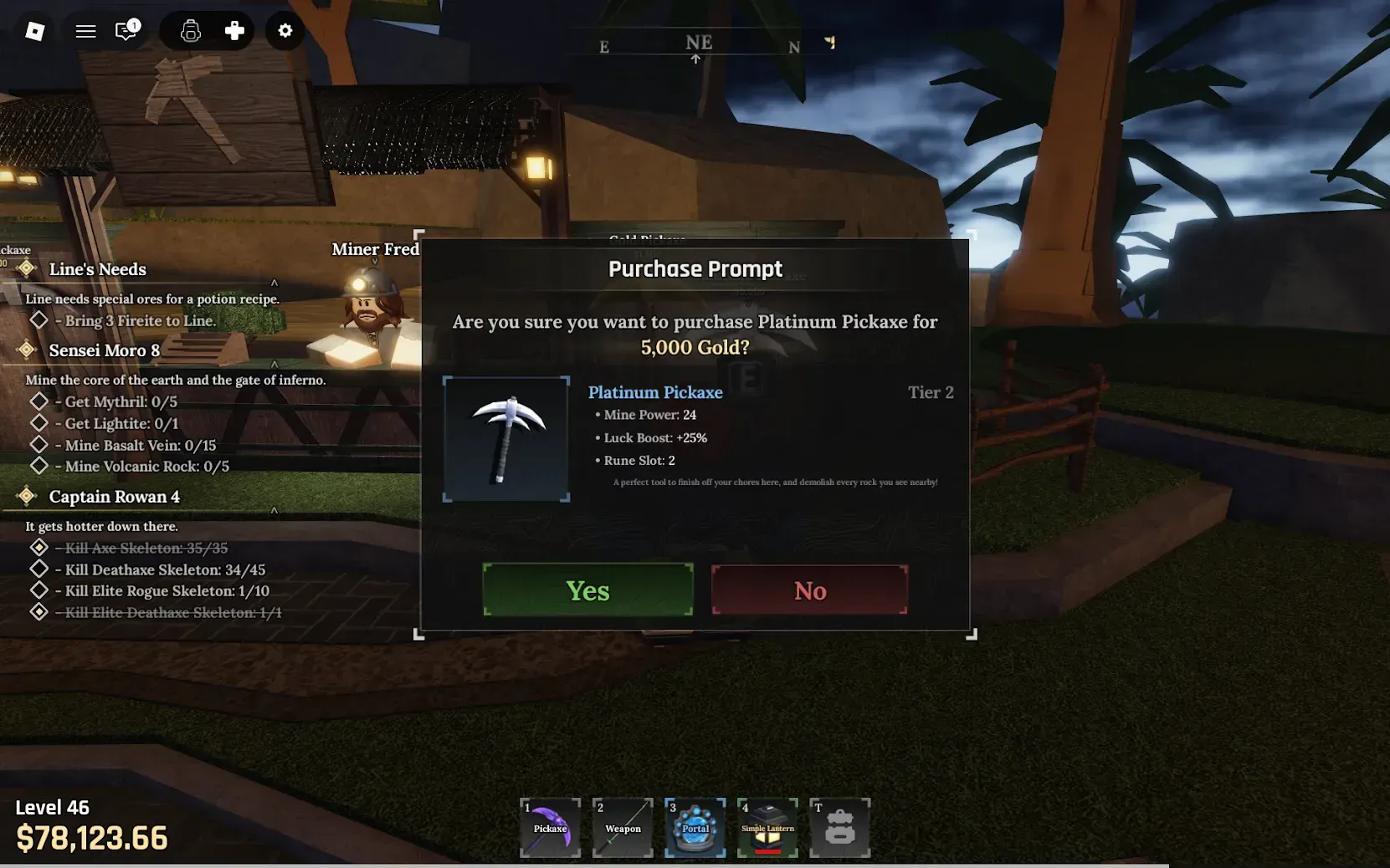 You can buy the Platinum Pickaxe from Miner Fred’s Shop in Stonewake’s Cross for $5000.