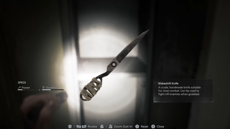 Before engaging him, search the dining room for a locker containing a Makeshift knife. This knife is central to the optimal strategy.