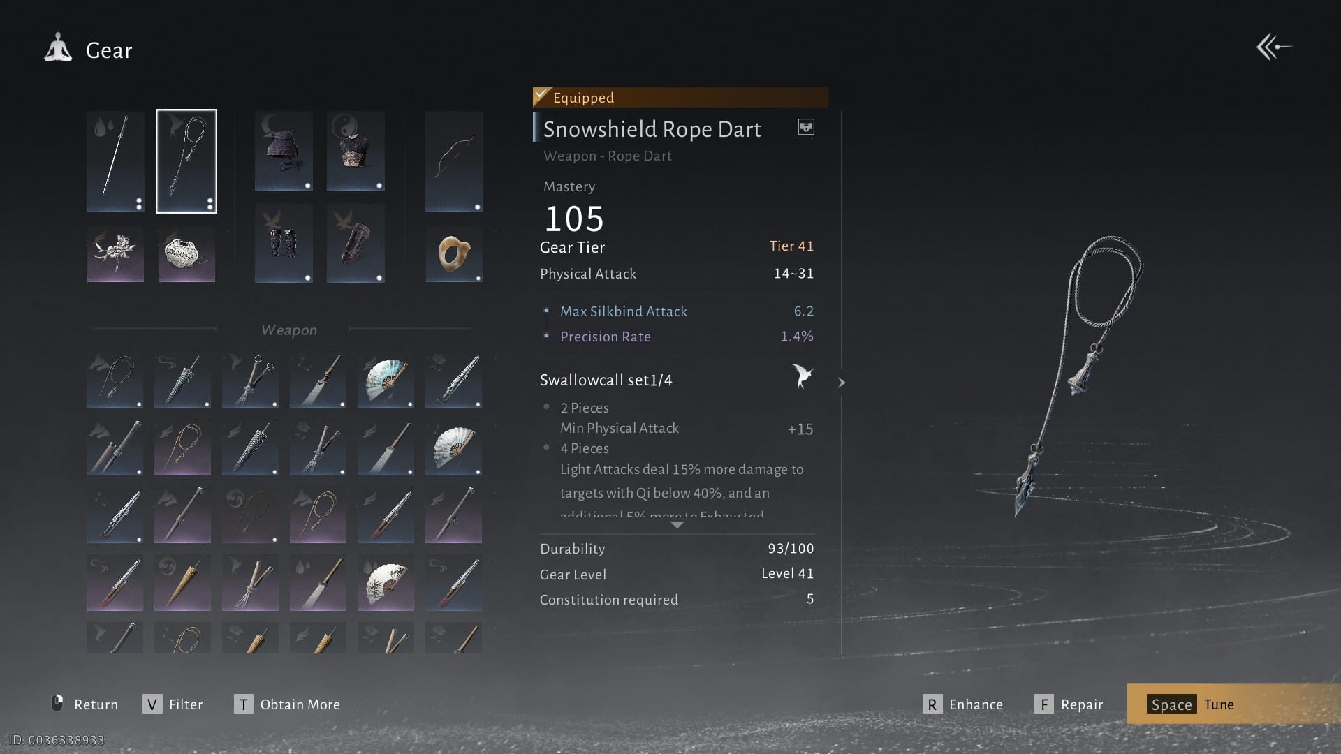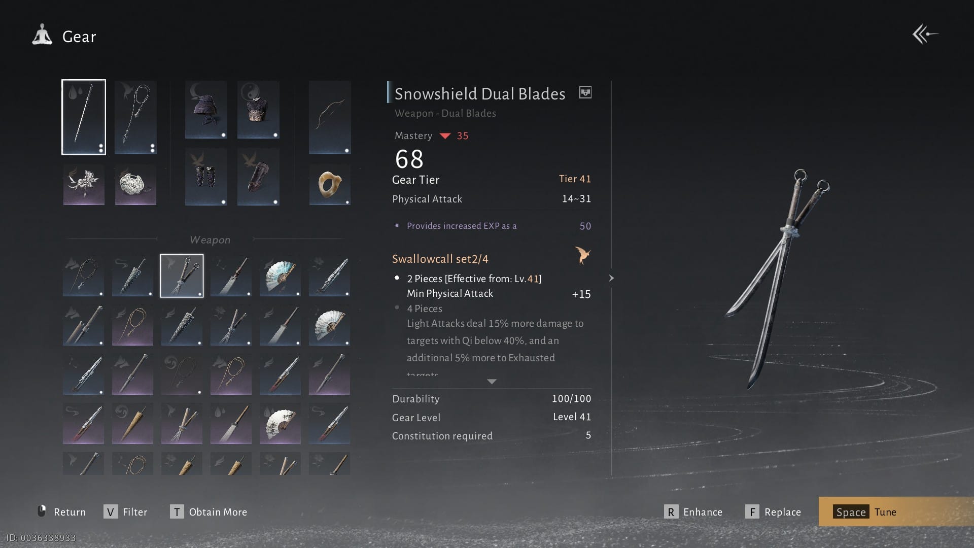 Snowshield Weapons in Where Winds Meet are a powerful set of gear featuring a variety of weapon types all at Gear Tier 41. These weapons deliver solid physical attack stats along with unique bonus attributes such as increased experience gain and special attack enhancements. From Dual Blades to Rope Darts, each Snowshield weapon offers players versatile combat options suited for different fighting styles and strategies.