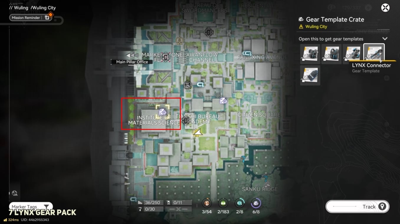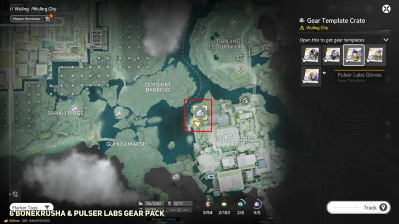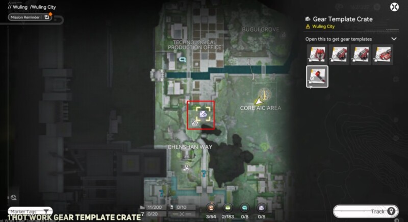 - Wuling City contains 8 Gear Template Crates total, each opened once to permanently unlock crafting recipes.