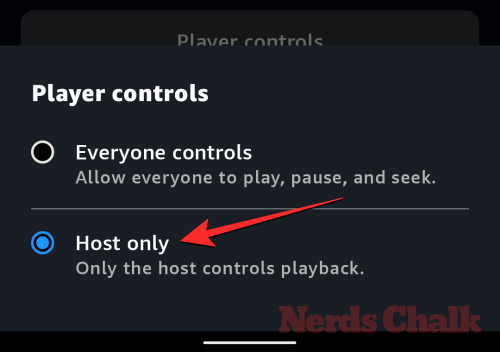 On Android, you’ll see a popup menu where you’ll need to select Host Only to turn off playback control for all participants.