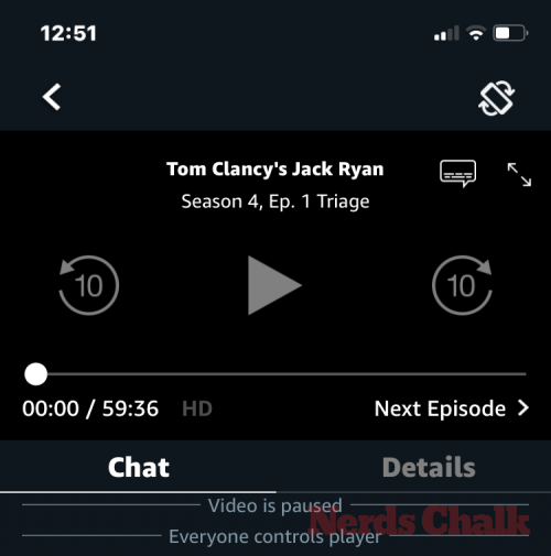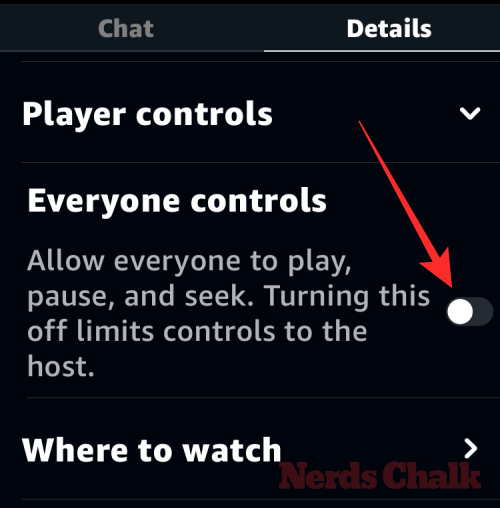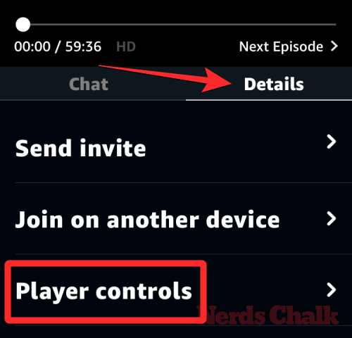 By default, Prime Video allows everyone in a Watch Party the ability to play, pause, and seek video playback during a session. If you’re the host of the Watch Party and you want to make sure that you’re the only person controlling the video playback, you can do so by tapping on the Details tab under the video playback section. Inside Details, you can tap on Player controls.