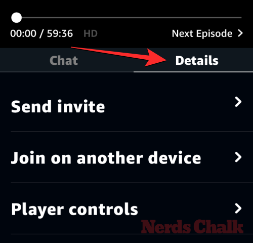 As a host of a Watch Party, you’ll be able to share invites to the group session when you first create it on Prime Video. If you have missed out on sending invites to some people, you can share the invite link even after a session has started. To do that, tap on the Details tab under the video playback section.